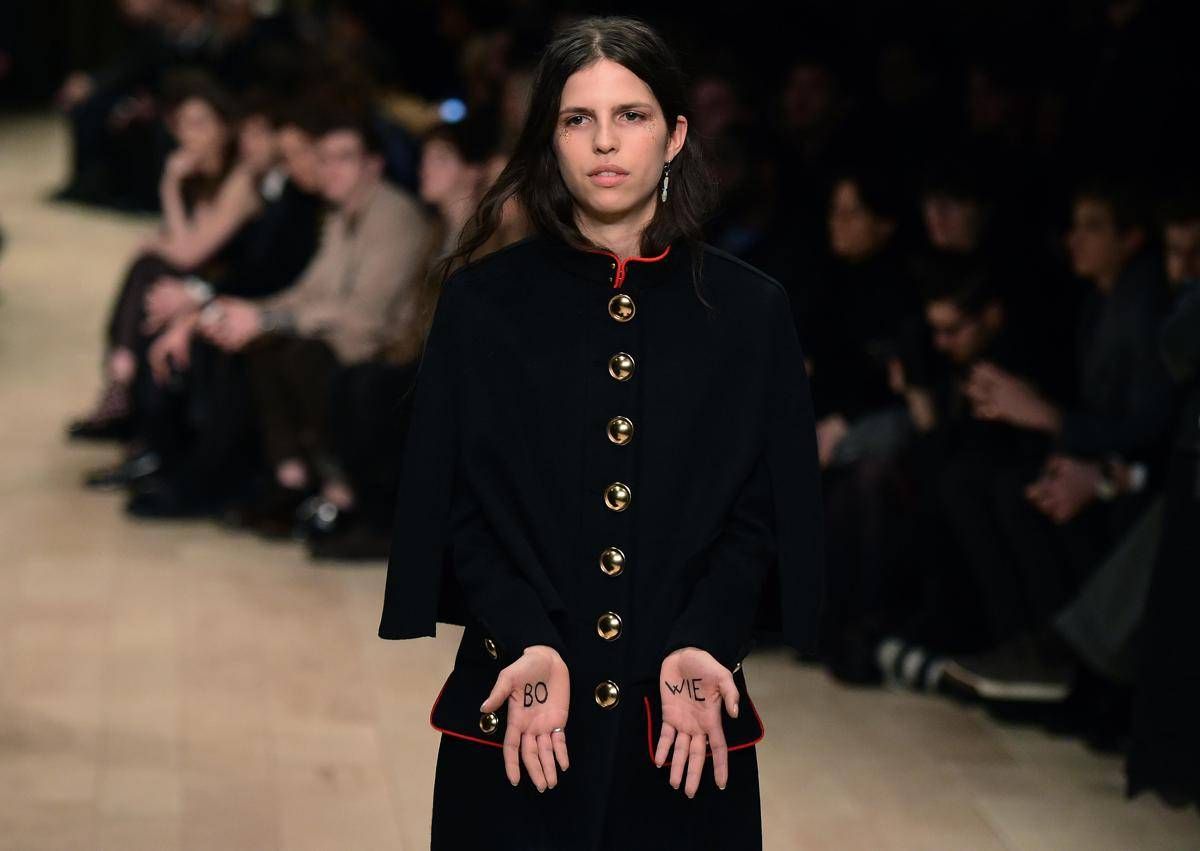 L'omaggio di Burberry a David Bowie: modella scrive il suo nome sul palmo delle mani